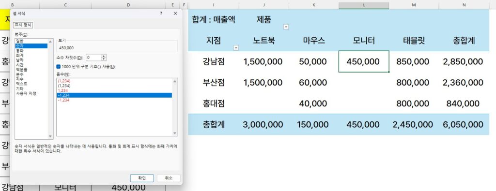 이렇게 설정해 두면 피벗 테이블을 아무리 뜯어고쳐도 숫자의 쉼표 스타일은 영구적으로 유지됩니다. 이런 디테일이 업무 효율을 만듭니다.